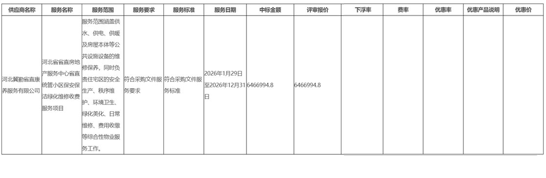 河北省省直房地产服务中心省直统管小区保安保洁绿化维修收费服务项目二次中标(成交)结果公告